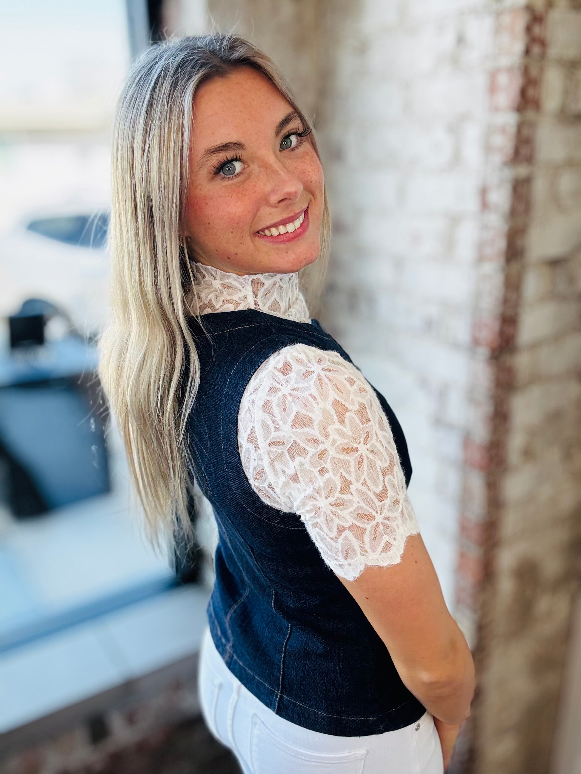 This chic denim vest features a flattering tailored fit, classic button-front detail, and structured seams, it creates a polished silhouette while still feeling effortless.