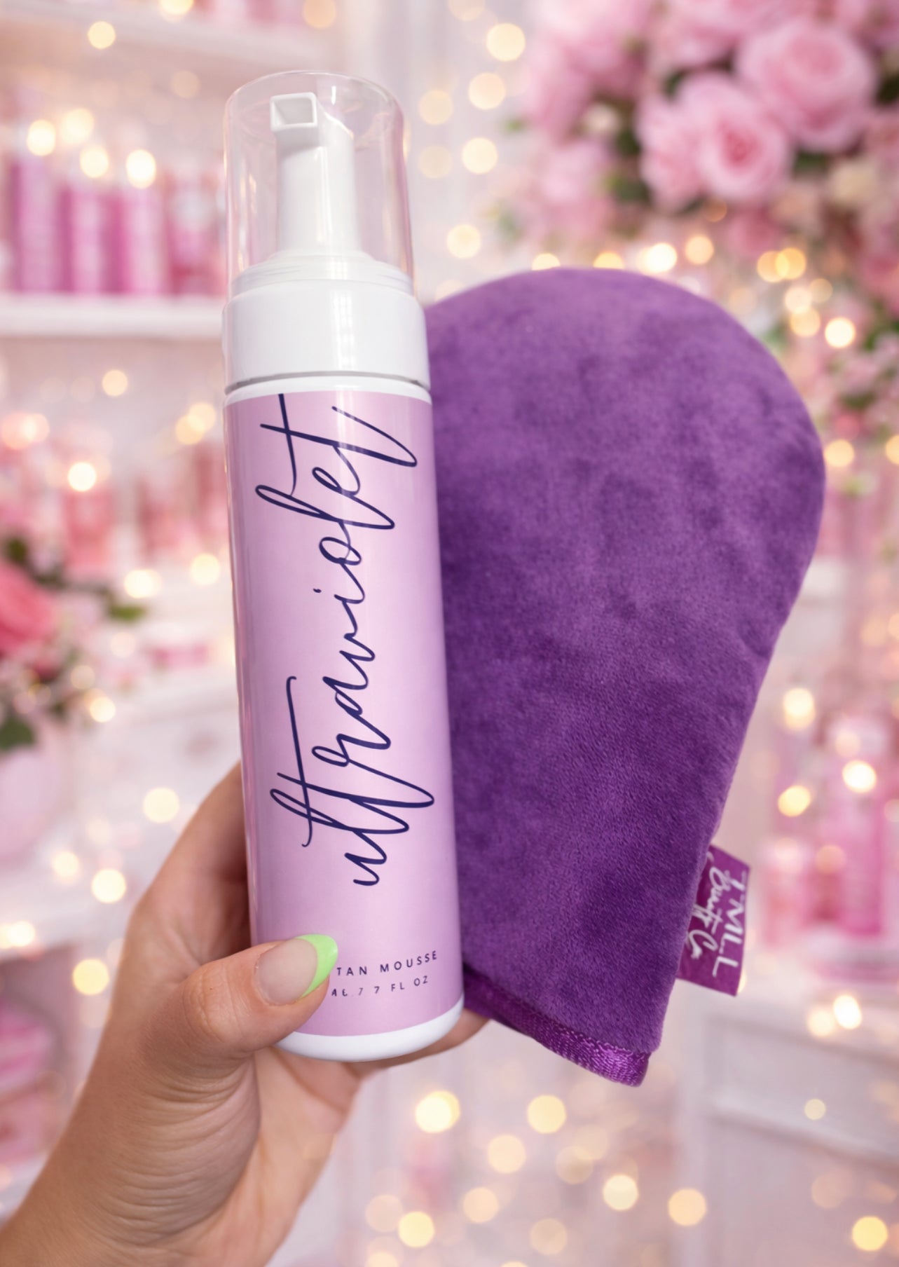 💜apply foam in sections. start with your legs. use circular motions to blend. move to your trunk, then chest. finally your arms.